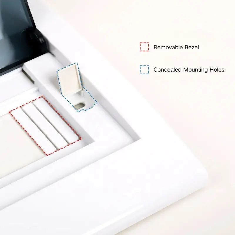Các lỗ và khe được tiêu chuẩn hóa được dành riêng trong bảng điều khiển, phù hợp cho các bộ ngắt mạch chính, thiết bị bảo vệ rò rỉ và đồng hồ thông minh, và hỗ trợ thêm hoặc trừ các mạch. Bề mặt của bảng điều khiển có thể được đánh dấu bằng tên mạch hoặc nhãn để nhận dạng nhanh và khắc phục sự cố, phù hợp cho các ứng dụng đa mạch.